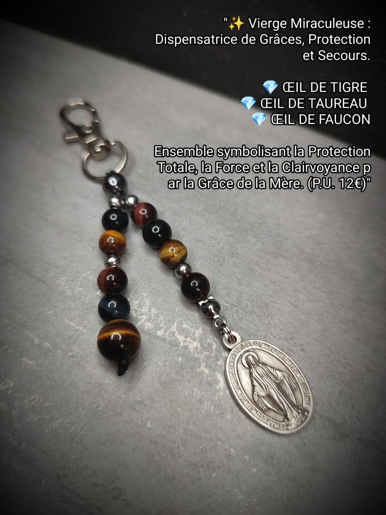 Porte-clés Vierge Miraculeuse : Œil de Tigre, Œil de Taureau, Œil de Faucon. (12€)